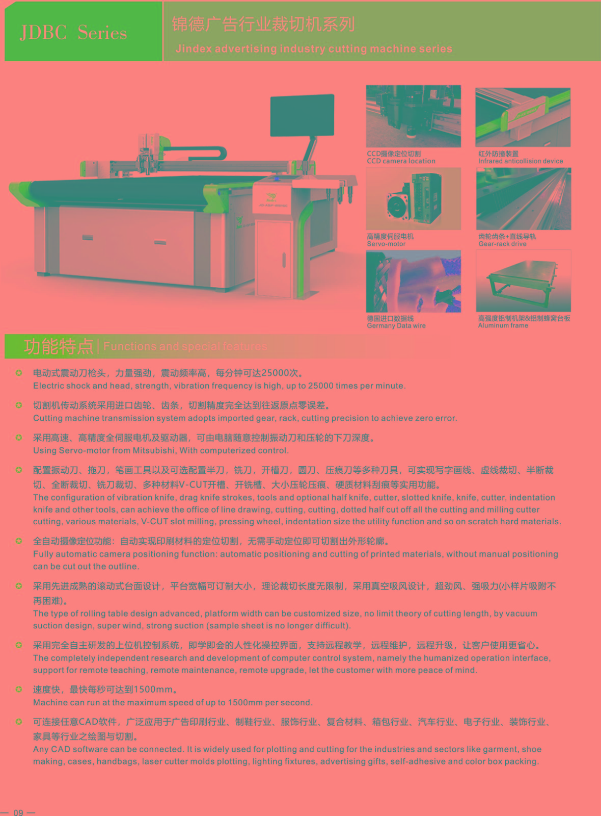 廣告行業(yè)用戶訂單需求款多量少,品質(zhì)要求高一直是傳統(tǒng)小型企業(yè)生存的一大難題,如何轉(zhuǎn)型提高競爭力迫在眉睫。錦德以客戶需求為導(dǎo)向,專注于為廣告后道制作用戶提供高效、智能、便捷的生產(chǎn)設(shè)備,提供專業(yè)的切割一體化解決方案。 錦德廣告數(shù)控切割系統(tǒng),精準(zhǔn)的CCD定位切割功能,可以讓您無論切割何種材料都能輕松定位高精裁切,并能在短時間內(nèi)快速完成全斷切割、半斷切割、鏤銑、繪圖、折痕或者打孔等一系列加工動作。自動排料系統(tǒng),可根據(jù)卷材進行等距切割,比同行更節(jié)省30%的切割時間,實現(xiàn)無縫對接。